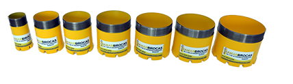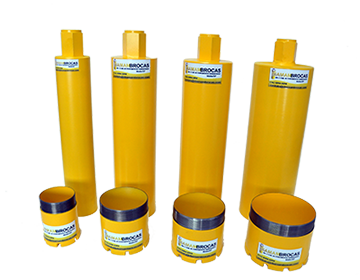 As Brocas acima de 9" são fabricadas apenas em peça única, possibilidade a troca dos segmentos diamantados, através do serviço de repastilhamento.